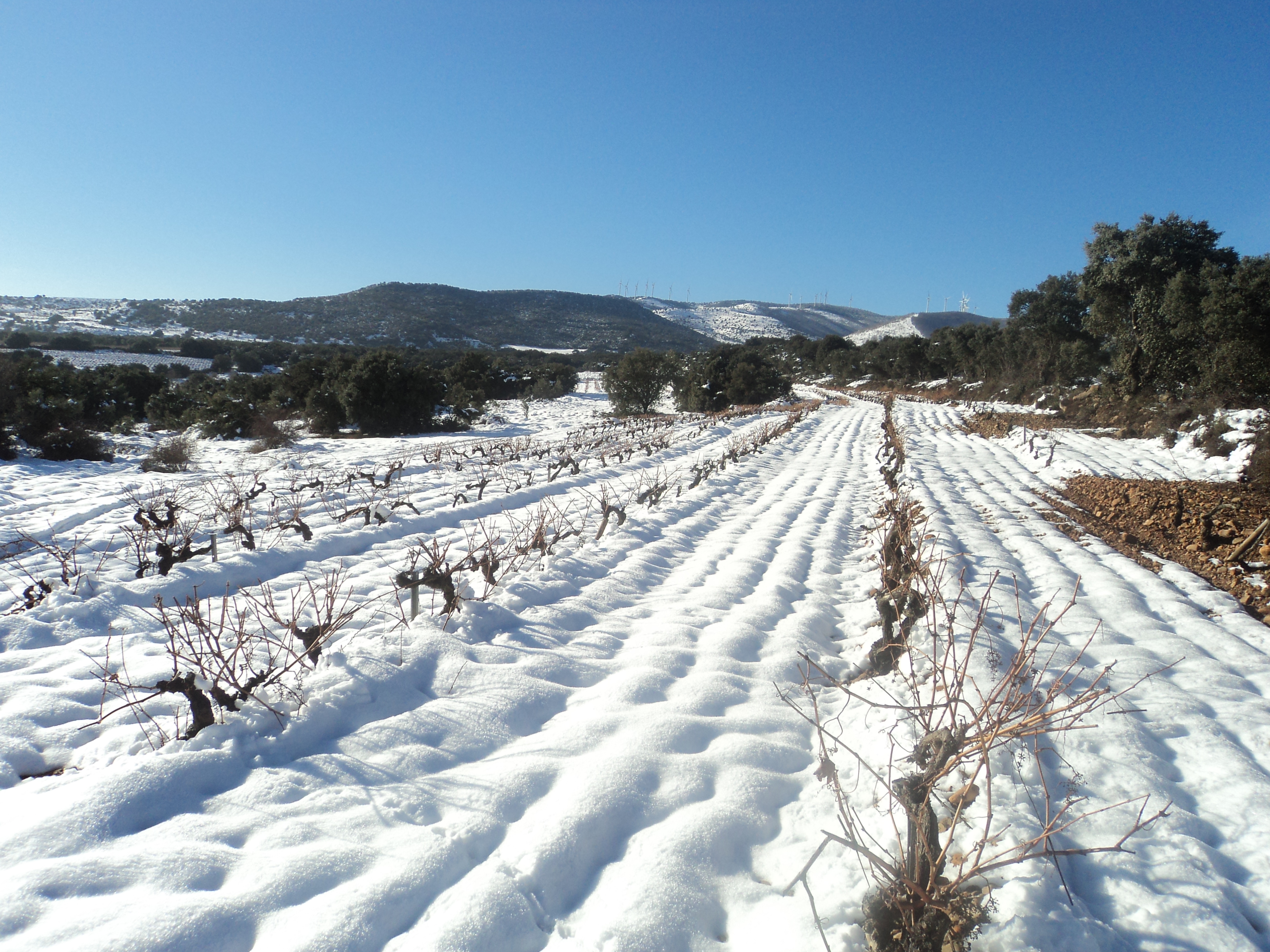 Como en anteriores ocasiones en este blog hemos comentado la importancia vitícola de la nieve para la viña. Os dejo un par de fotos para que disfrutéis de este paisaje y estos regalos para la vista que nos deja el invierno. Salud amigos.